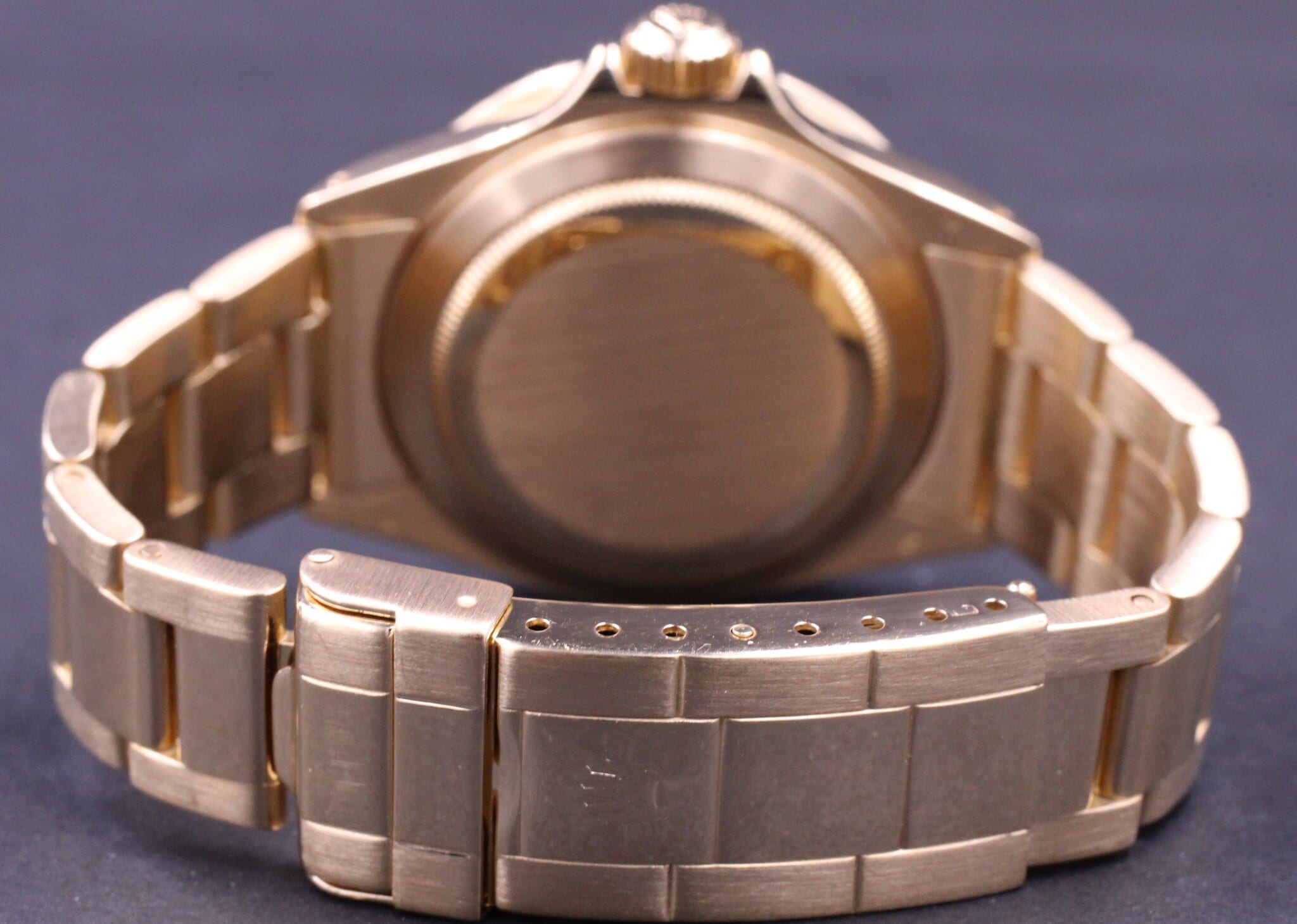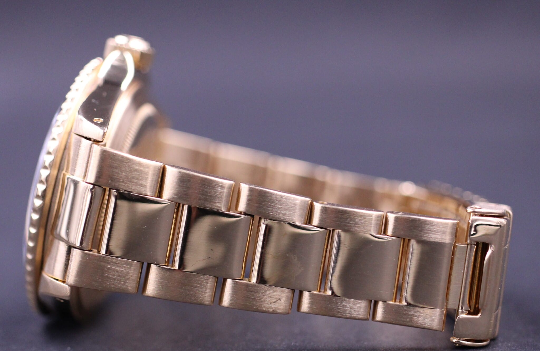 Super lækkert neo-vintage gult guld Submariner med blå skive. Uret er i flot stand, med synlige facetter på hornene og rigtigt pæne crown-guards. Ref. God lænke uden nævneværdigt stræk.