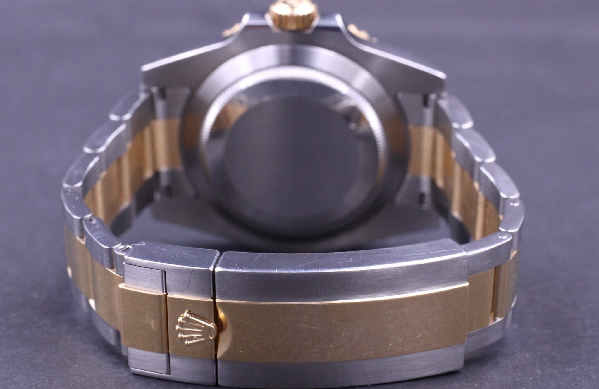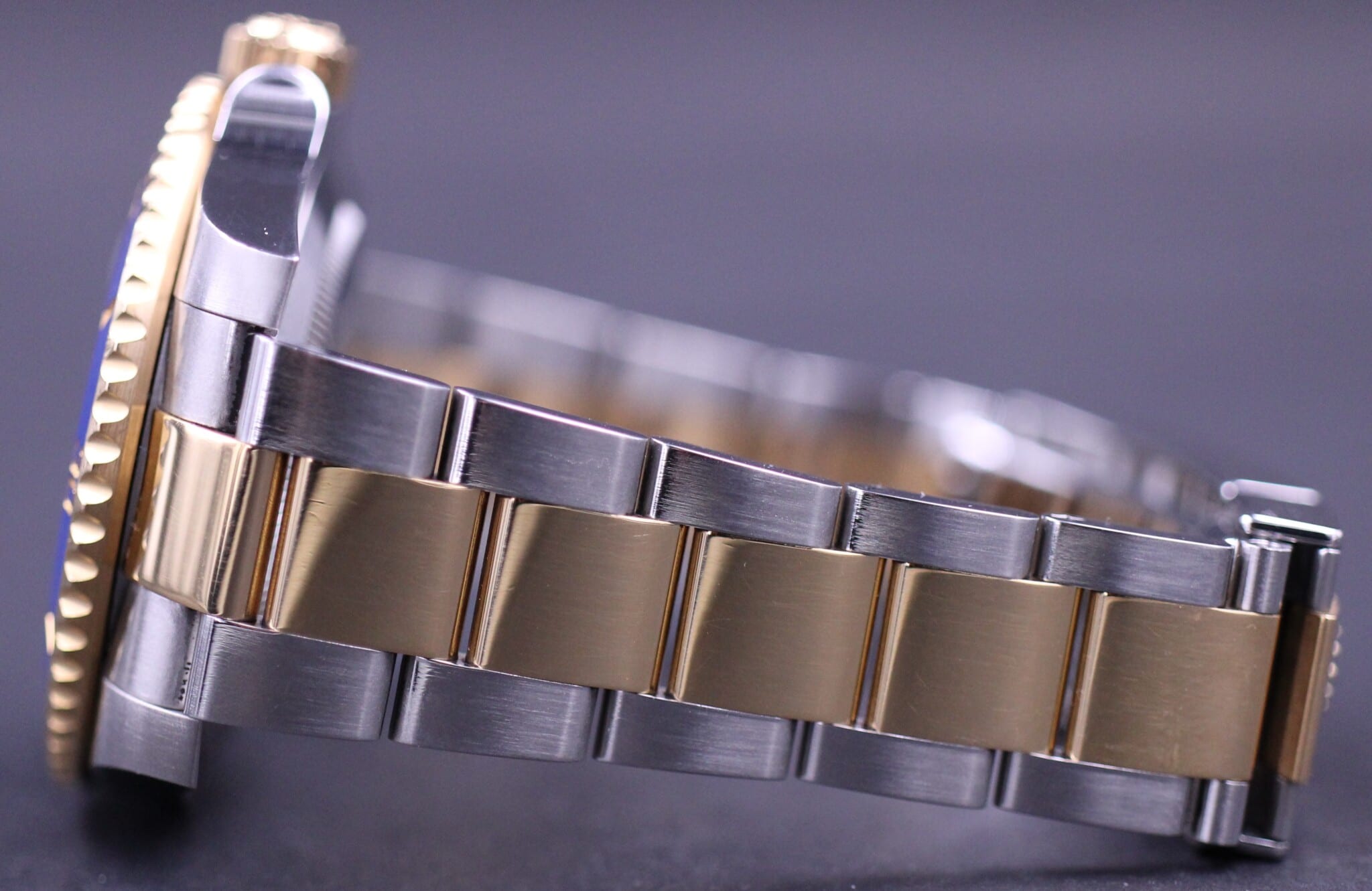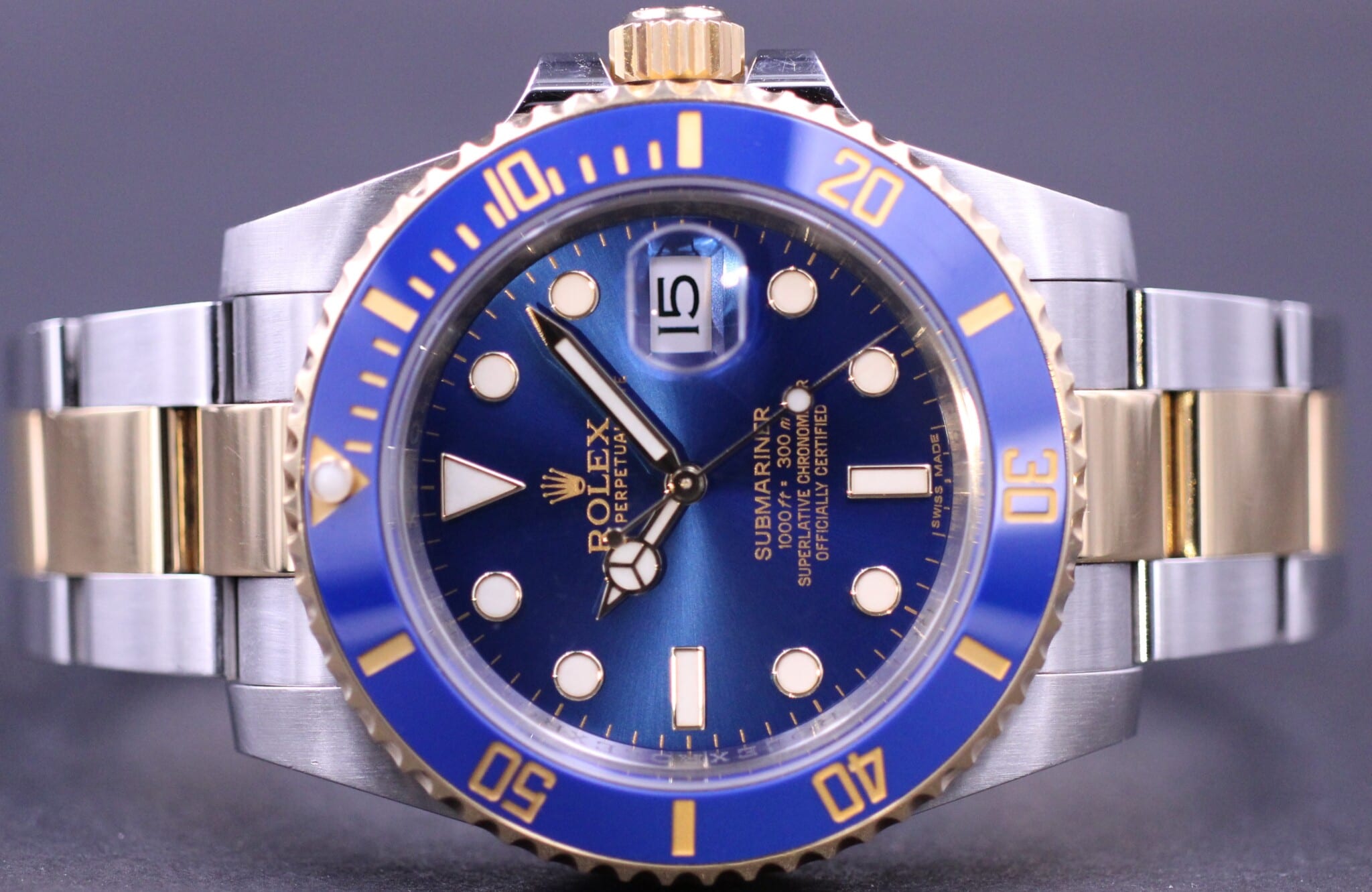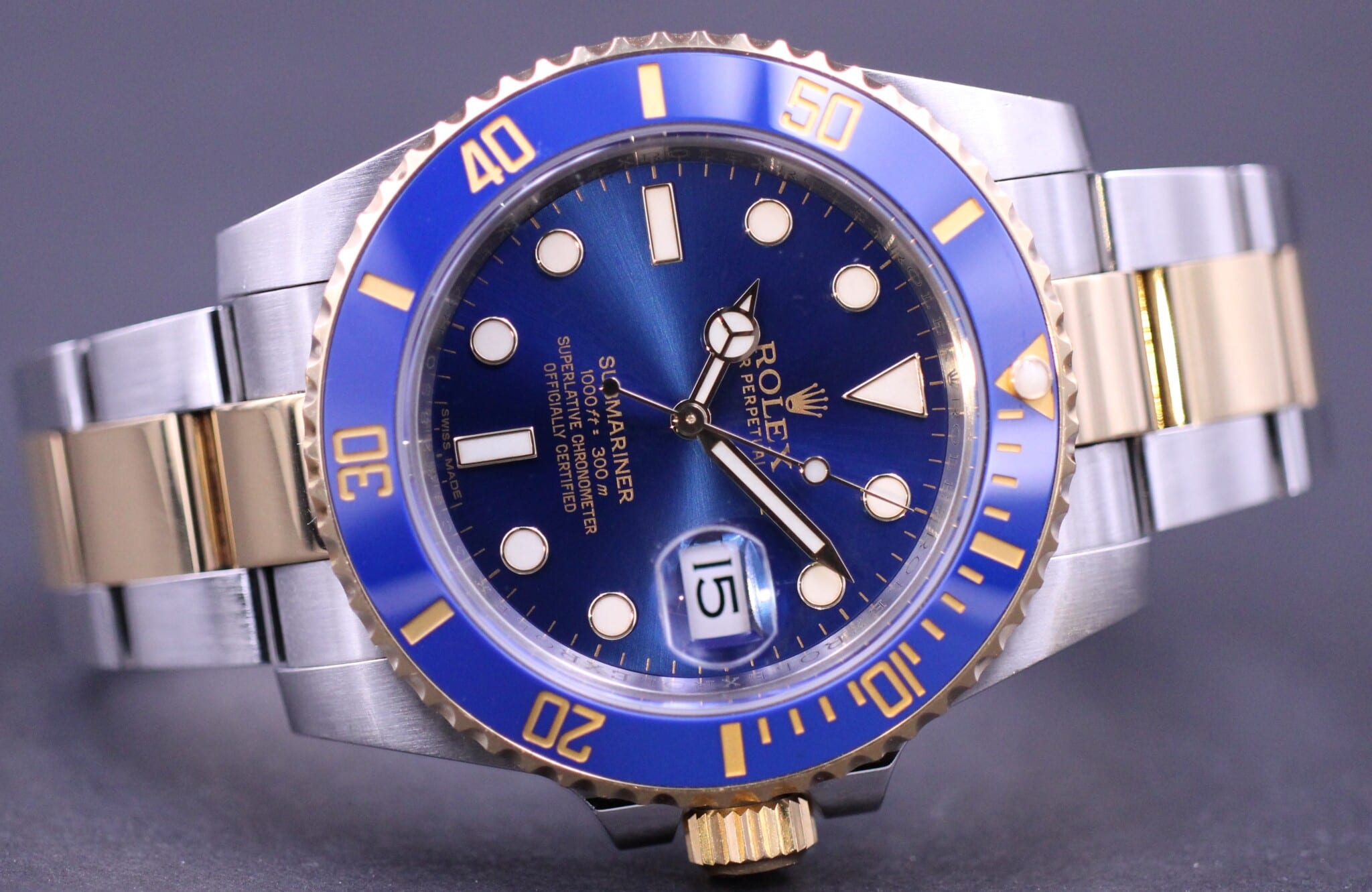 Uret er med den Keramiske krans, og den nyeste model af Submarineren. Uret er monteret med den super flotte blå sunburst skive og udført i guld/stål. Uret er med et cal. 3135 værk og låsen er udstyret med Glidelock extension.