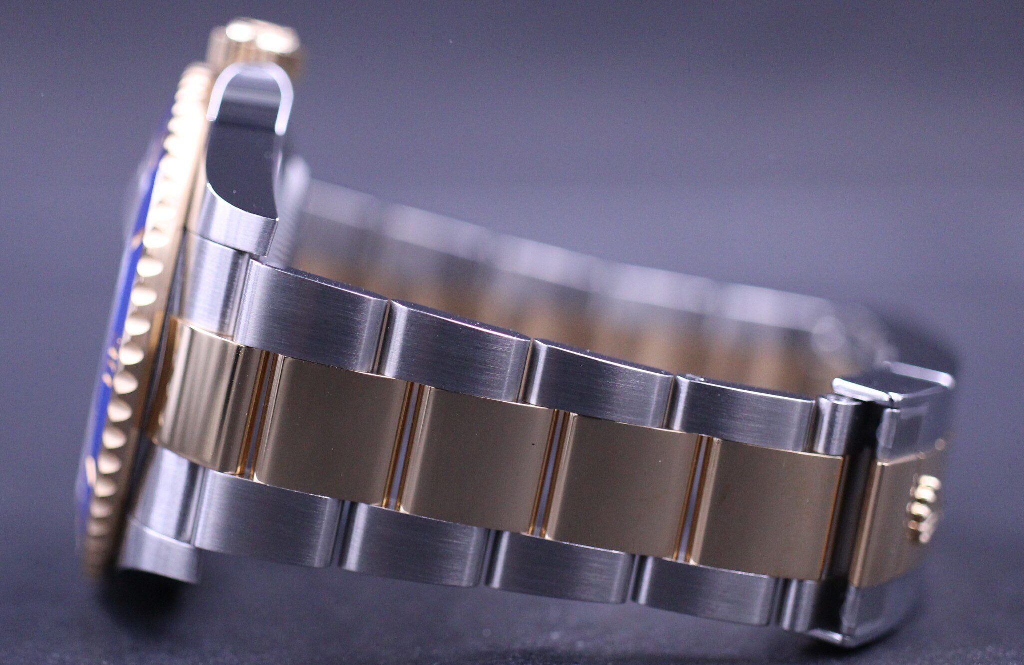 Rolex’ vel nok mest klassiske Submariner design og med det opgraderede Rolex Cal. 3235 værk, blue parachrom hairspring og udført i guld og stål.