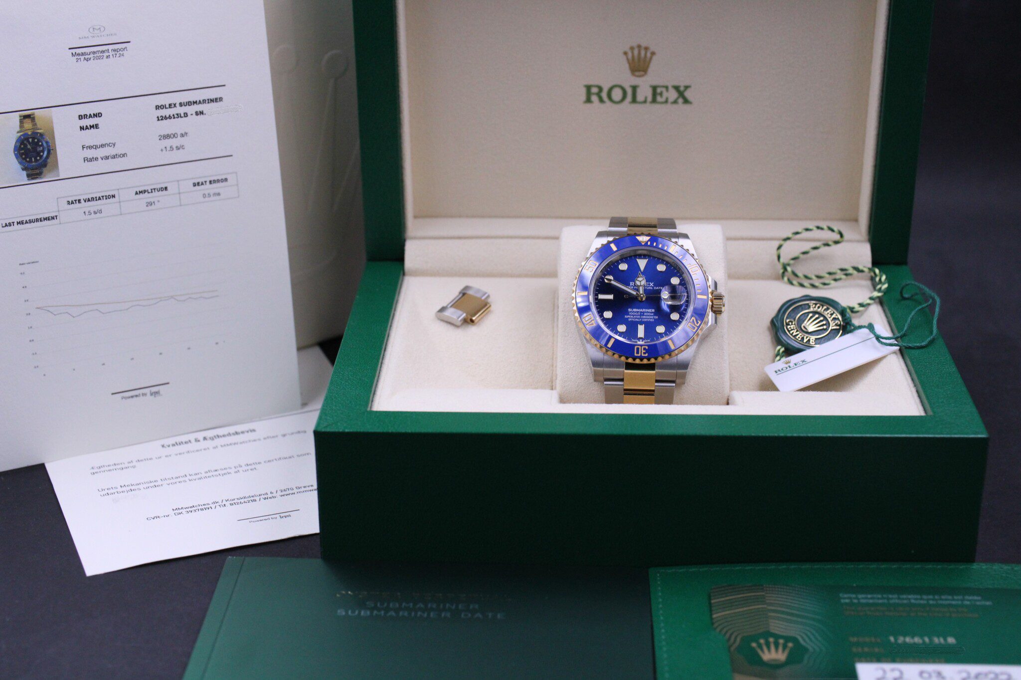 Med til dette ur medfølger MMwatches ”Kvalitet og ægthedsbevis”. Gennem vores grundige gennemgang af uret, fastslår vi at uret er 100% originalt. Urets mekaniske tilstand er testet og lever op til vores kvalitetskrav. Målingerne kan ses i det medfølgende bevis..