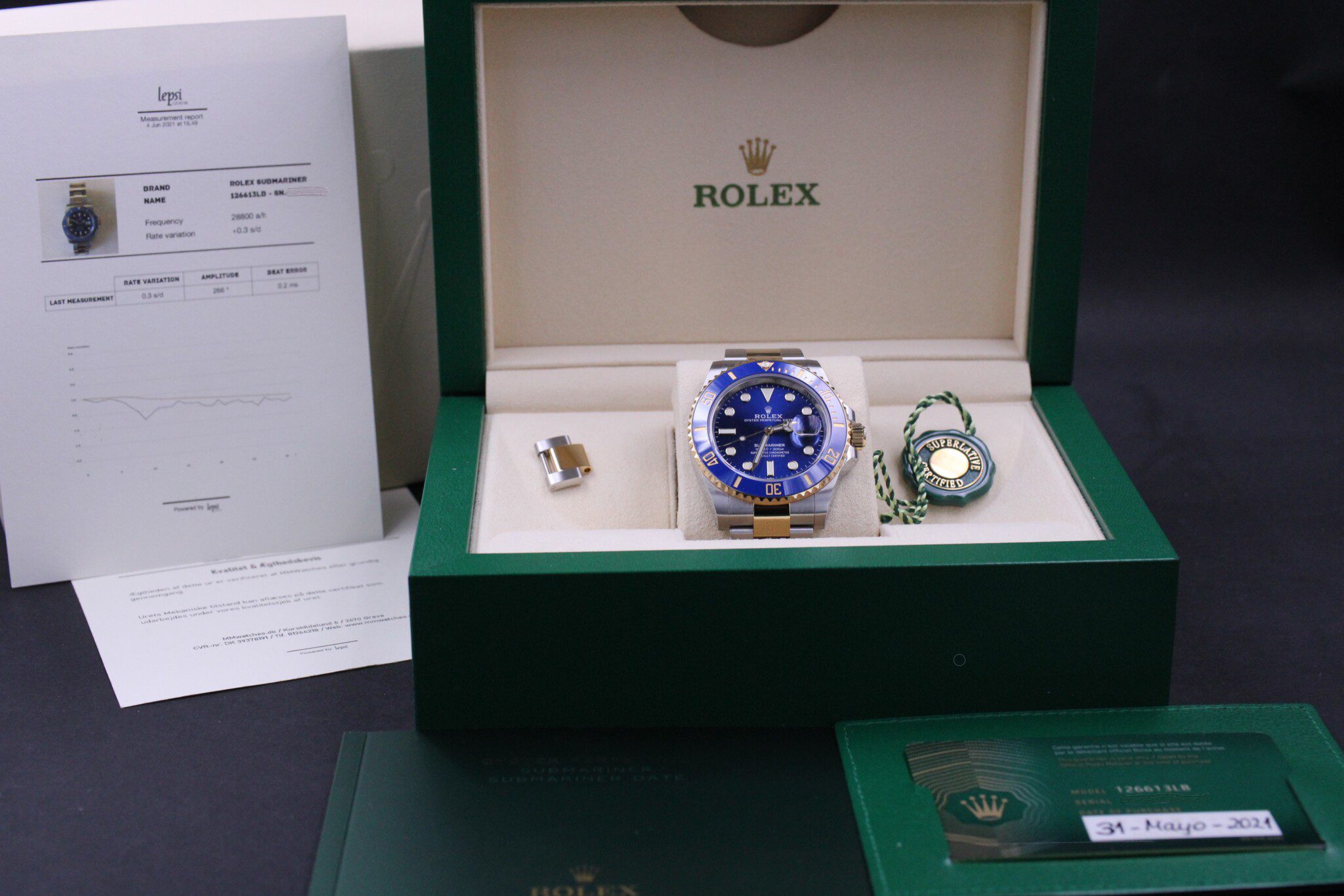 Mærke: Rolex Model: Submariner Ref. nr.: 126613LB Årgang: 2021 Tilbehør: Boks, papirer & certifikat Funktioner: Dato Størrelse: 41mm Stand: 100%