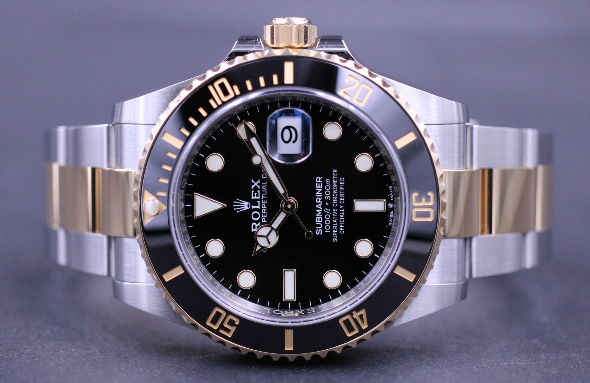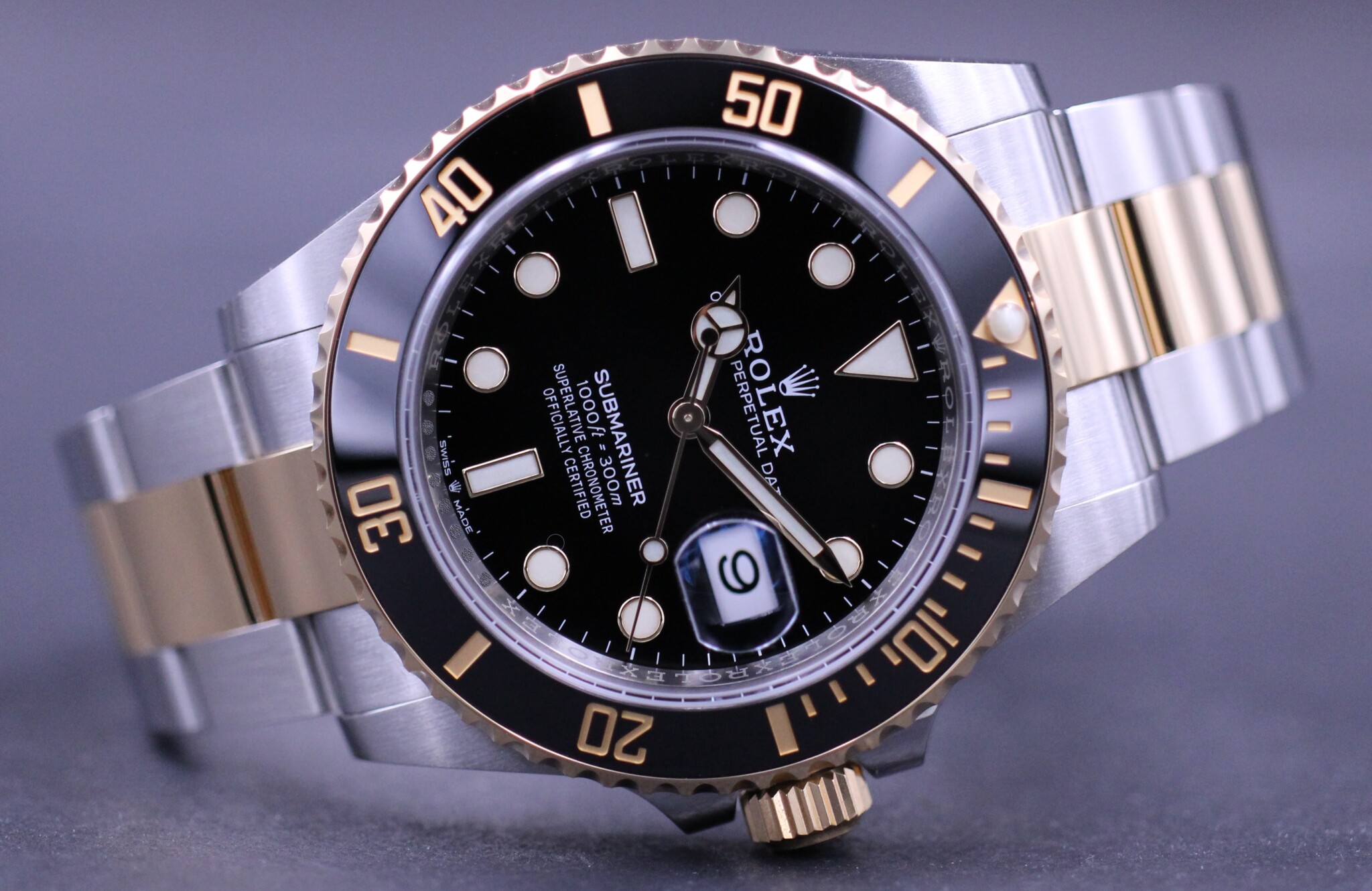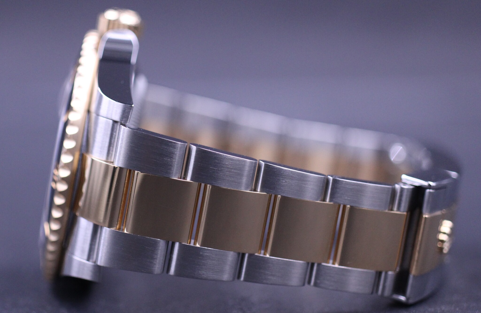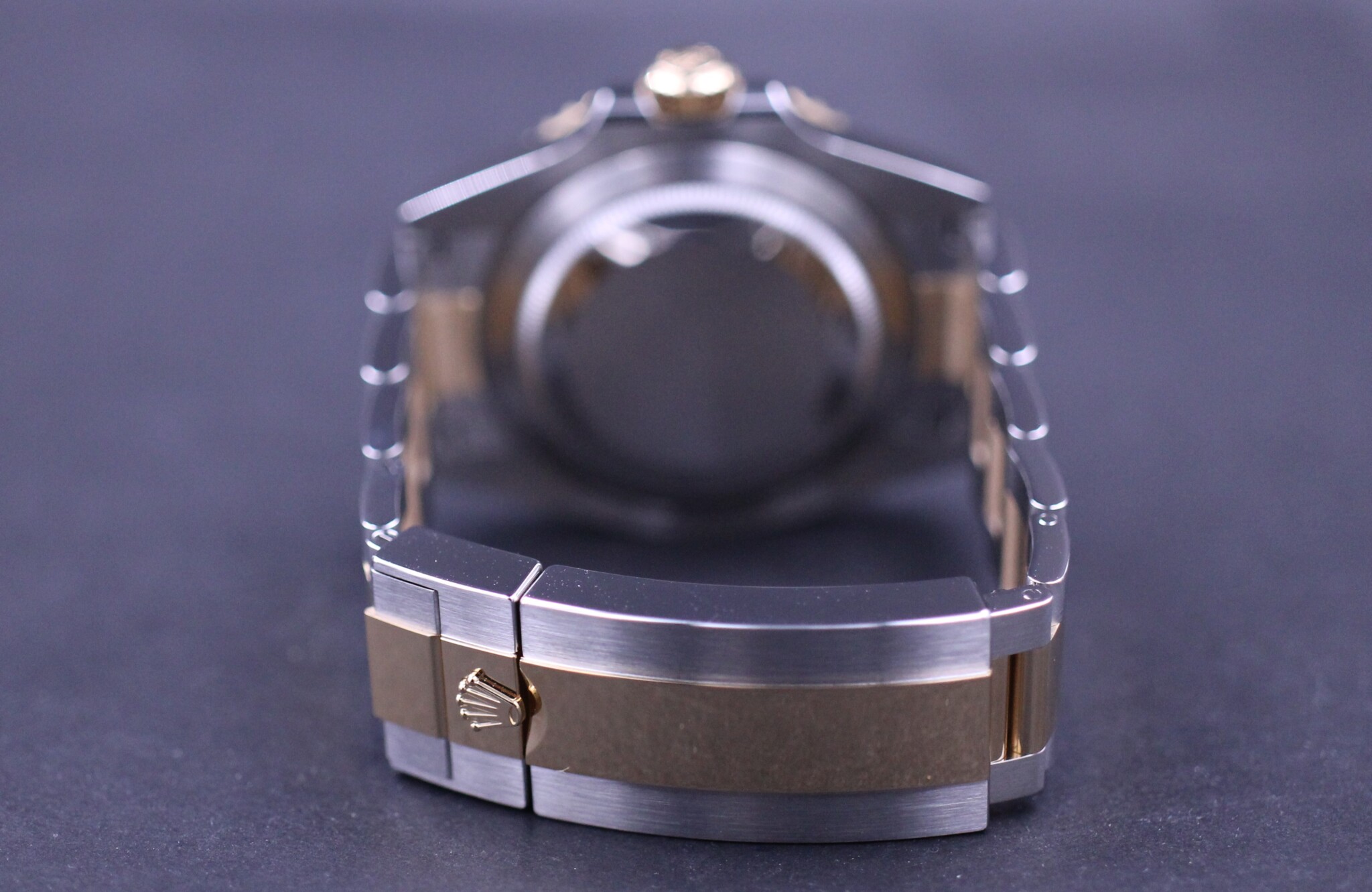 Rolex’ vel nok mest klassiske Submariner design og med det opgraderede Rolex Cal. 3235 værk, blue parachrom hairspring og udført i guld og stål.