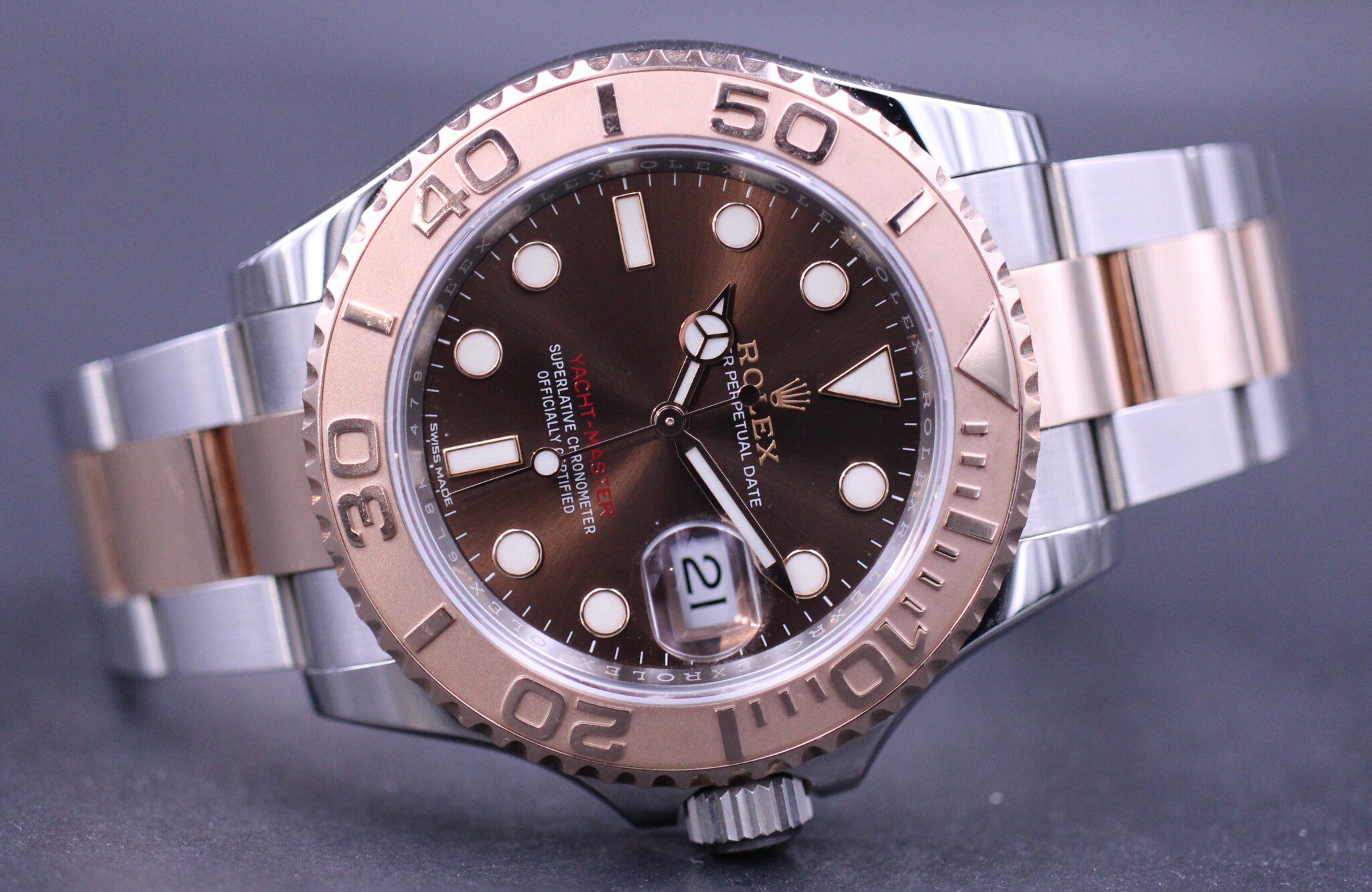Smukt Yacht-Master i Everose gold og stål med lynette i 18K Rosegold kombineret med den smukke Choko dial.