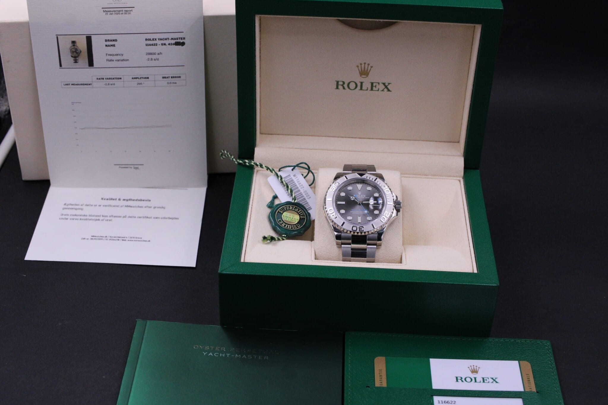 Rolex Yacht-Master 40, ref. 116622 solgt i 2018. Dermed omfattet af Rolex World Wide Garanti til 2023. Uret er i meget flot stand..