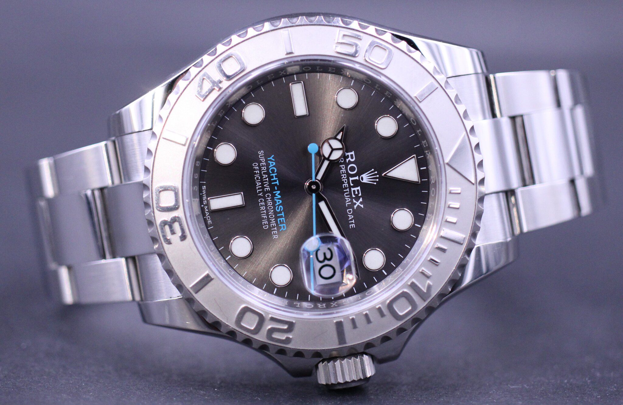 Super flot Yacht-Master med den nye smukke Rhodium maxi skive. Uret kommer med en lynette af platin.