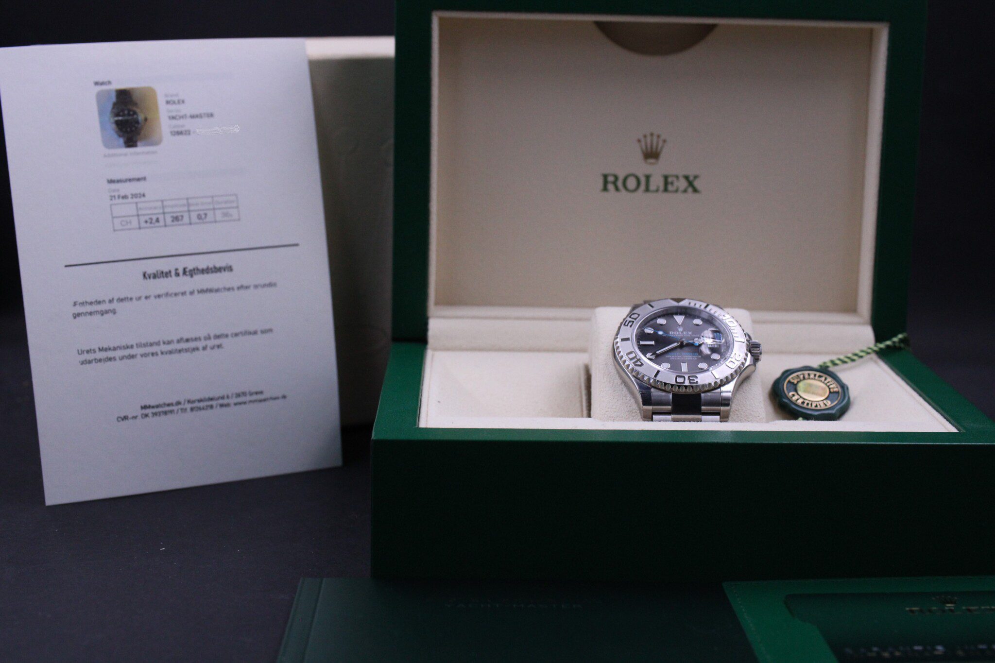 Med til dette ur medfølger MMwatches ”Kvalitet og ægthedsbevis”. Gennem vores grundige gennemgang af uret, fastslår vi at uret er 100% originalt. Urets mekaniske tilstand er testet og lever op til vores kvalitetskrav. Målingerne kan ses i det medfølgende bevis.