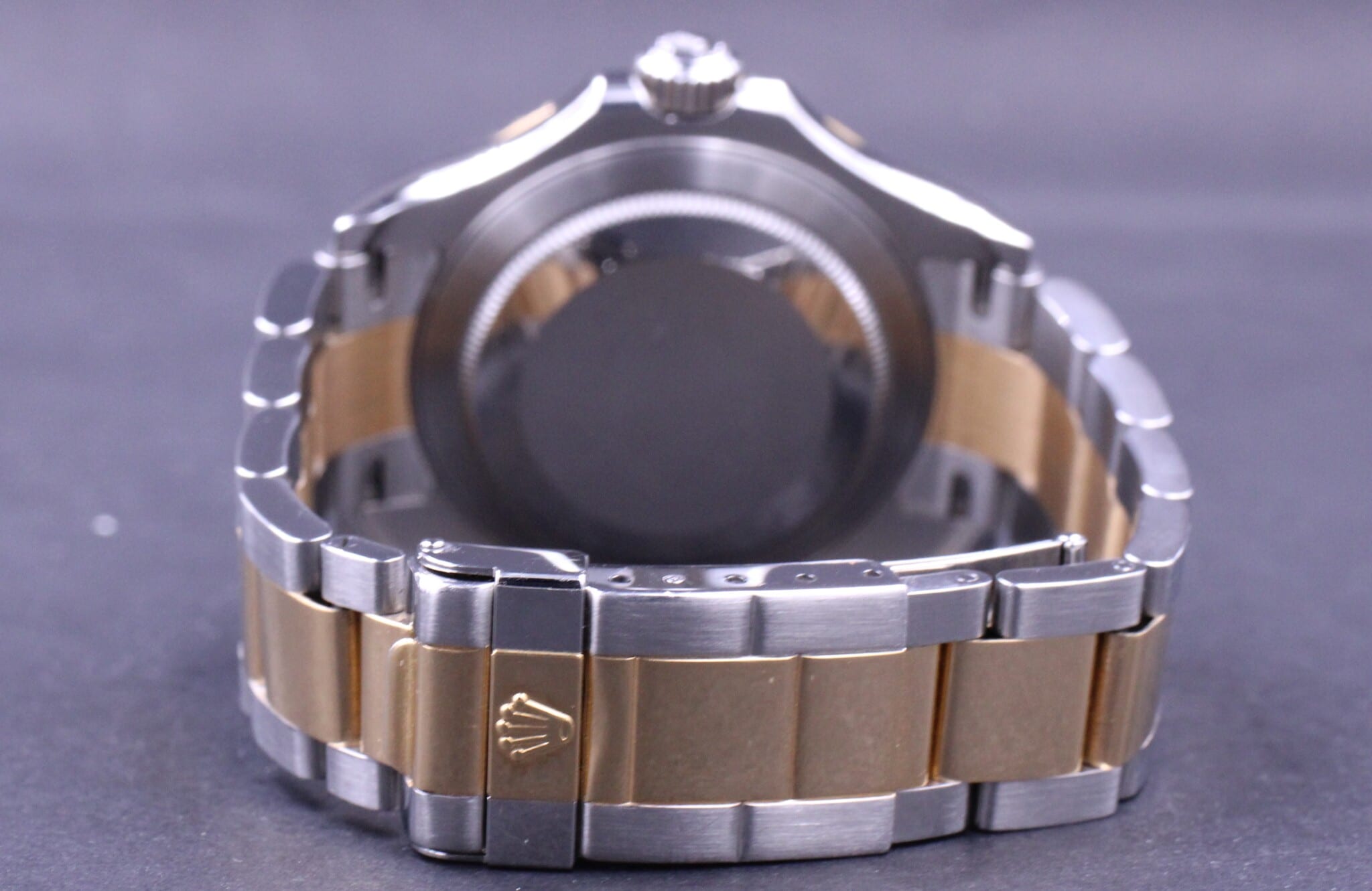 Meget flot og velholdt Yacht-Master i guld/stål. Uret er med hvid skive, som står flot til indlægget i 18k guld. Et automatisk Cal. 3135 værk med en gangreserve på ca 50 timer og dato funktion.